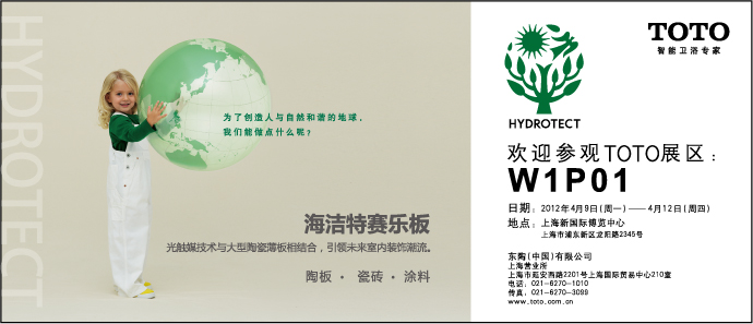 2012年4月9日至12日,第十三屆中國國際建筑陶瓷及衛浴科技精品展覽會在上海新國際博覽中心盛大舉行。TOTO“海潔特”展區位于W1P01,與眾多建筑陶瓷品牌一起共同打造一場琳瑯滿目的年度盛宴。作為中國乃至世界生態建材市場的...