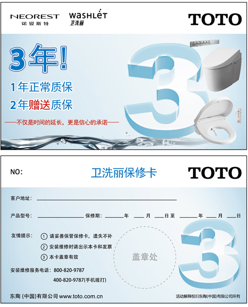 貼心的回饋 信心的承諾—— 智能坐便器產品、衛洗麗產品延長至三年質保