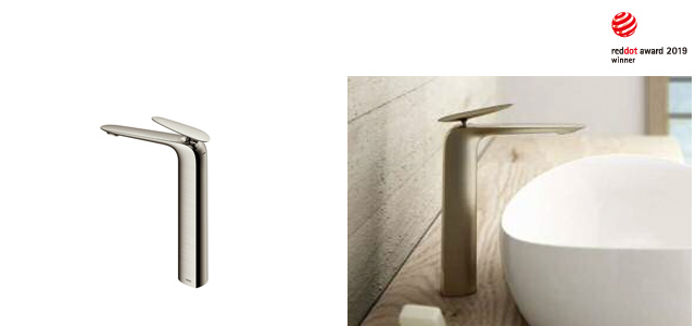 核心設計理念是“Edge(刀刃)”,靈感源自于傳統工藝品。V字形表面一直連接至出水口的最前端,著重強調金屬所具有的緊迫感和美感。根據觀看角度的不同,其外形也會產生非常豐富的變化,營造出華麗的空間。此外還有3種不同高度(S/M/L)以及多種不同顏色可供選擇。